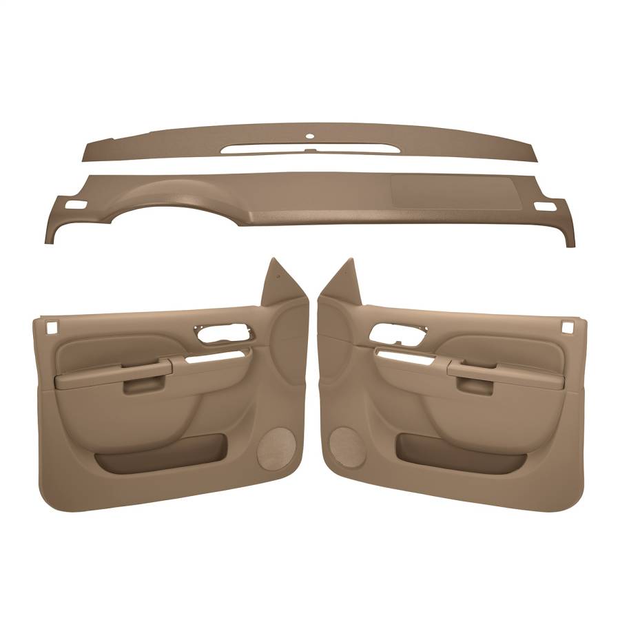 2010-2013 Chevrolet Tahoe, Suburban and GMC Yukon and Yukon XL dashboards are known to crack and break in various areas of the dash as well as the door panels becoming faded and worn over time. Coverlay now has a solution for these broken or cracked dashboards - both for the front and rear portions and worn out door panels. Fix up your interior with this combo kit. Coverlay products are made from durable ABS plastic, Vacuum Molded for Great Fit, and will not crack even in extreme temperatures. Both the dash covers and the door panels will give you an OEM look when installed. Our products are made in the USA and come with a lifetime warranty. We offer 12 generic colors at no extra cost. Will ship in approximately 72 hours.