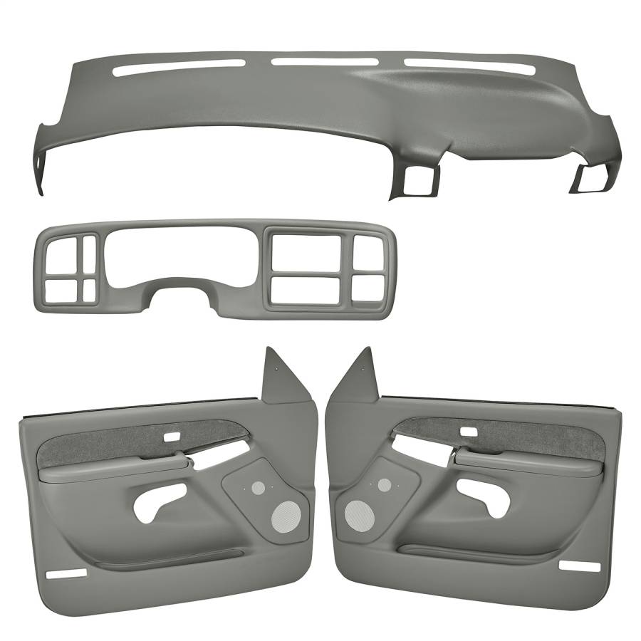 This combo kit for your Chevrolet and GMC Pickup and SUV will get your interior looking great again. It includes the Dash Cover, Instrument Panel Cover, and Door Panel Set. All items easily install in minutes. 12 different colors to choose from.