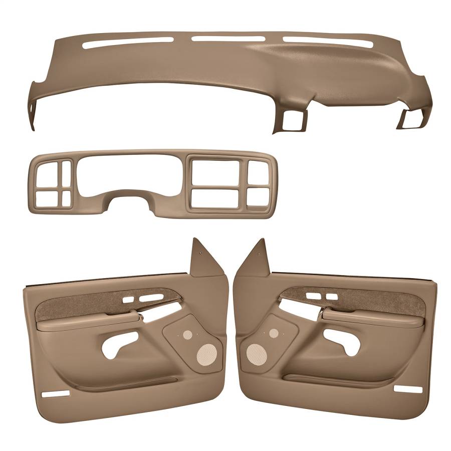 This combo kit for your Chevrolet and GMC Pickup and SUV will get your interior looking great again. It includes the Dash Cover, Instrument Panel Cover, and Door Panel Set. All items easily install in minutes. 12 different colors to choose from.