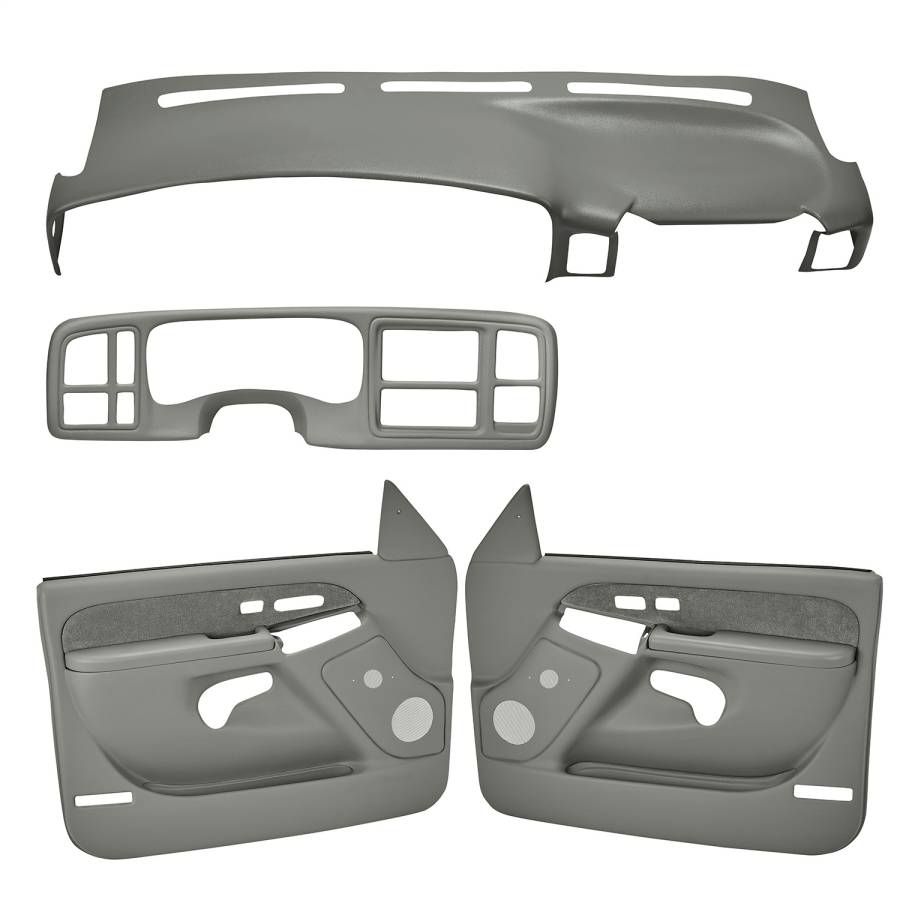 This combo kit for your Chevrolet and GMC Pickup and SUV will get your interior looking great again. It includes the Dash Cover, Instrument Panel Cover, and Door Panel Set. All items easily install in minutes. 12 different colors to choose from.