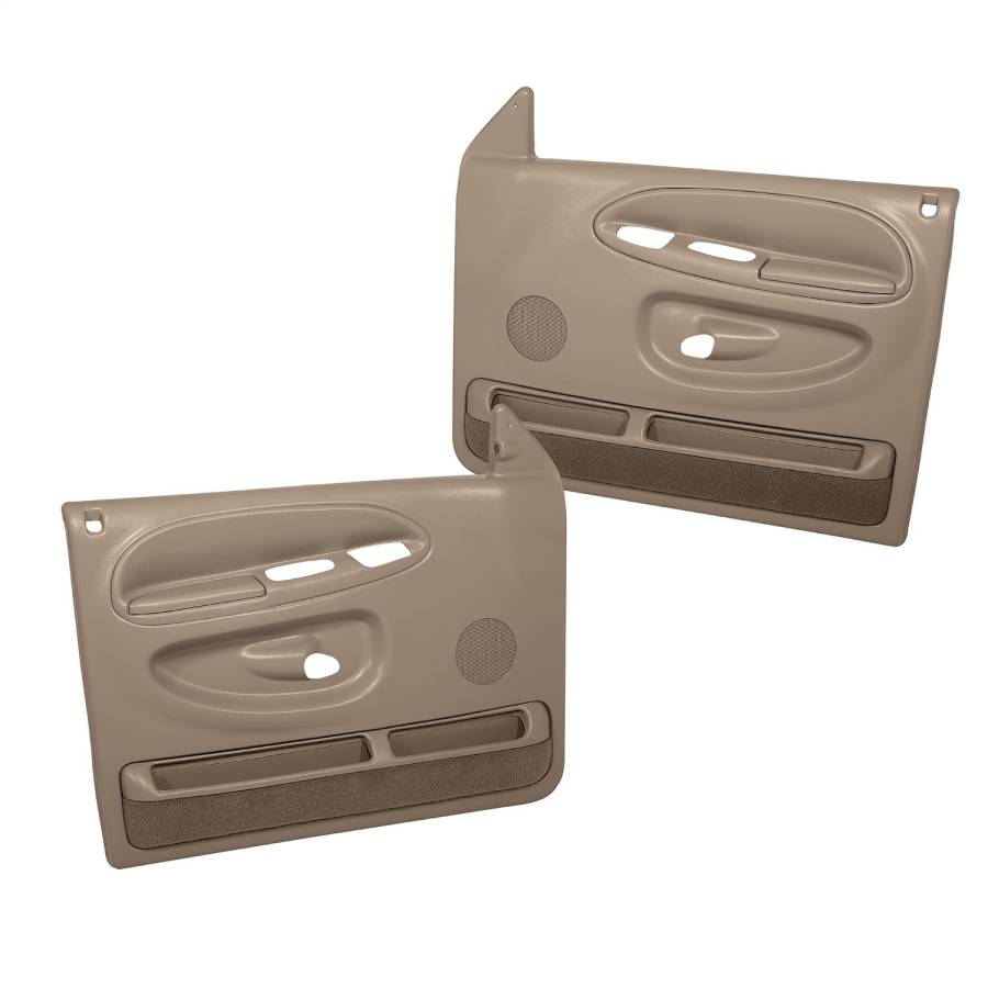 These full replacement door panels for the 1998-2001 DODGE RAM 1500 and the 1998-2002 RAM 2500, and 3500 pickups are a great way to restore your interior. Sold in pairs and come with a lifetime limited warranty. 15 generic colors to choose from. Panels include padded armrest, and hardware. Made in the USA. These are for the full power door panels.